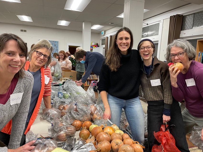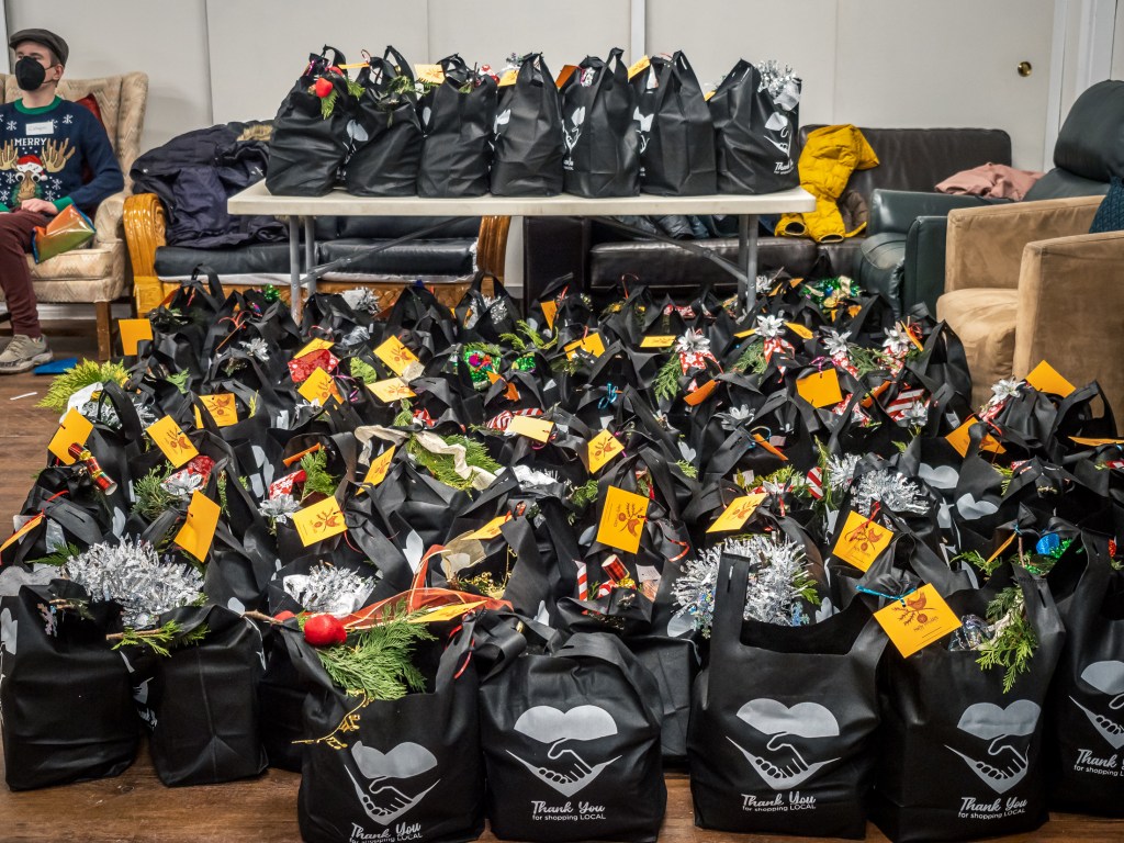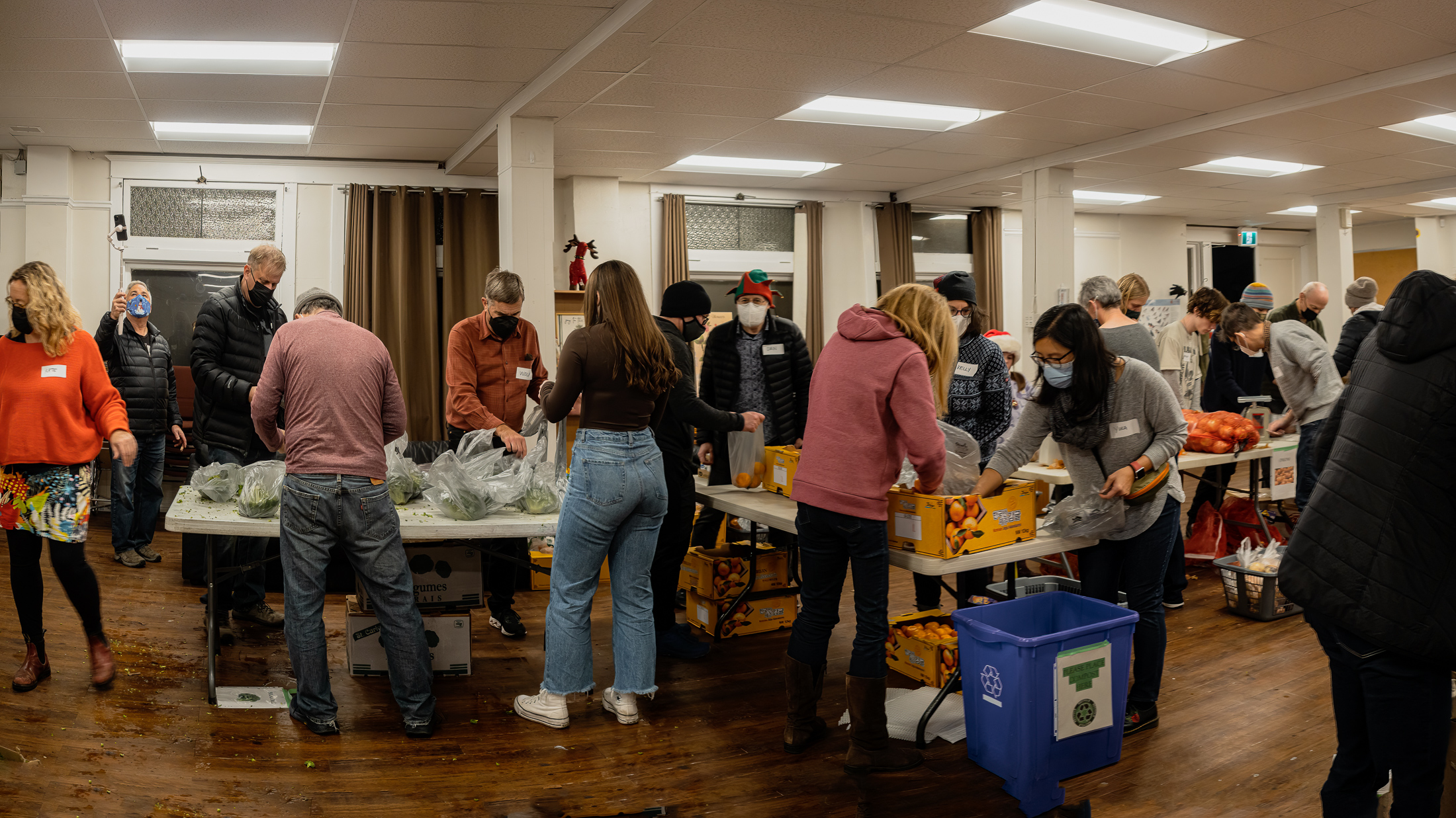 The The Final Count…Neither wind, nor rain, nor supply chain disruption and Omicron could stop Christmas Hamper Party from providing the Salvation Army with—drumroll, please!—201 hampers, plus cases and cases of additional veggies and 500 paper bags for their food bank.